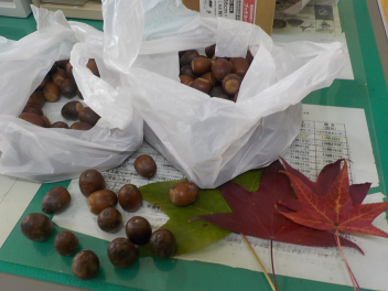 和地地区にお住いの方が、今年もきれいな色に染まった落ち葉やツゲ実を届けてくださいました。近辺の全ての園に配布しているとのこと。みんなで遊ばせていただきます。ありがとうございました。