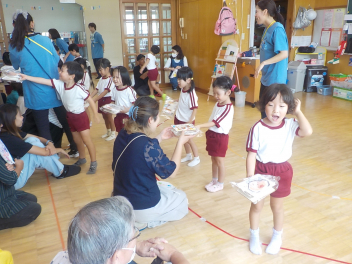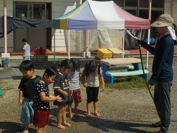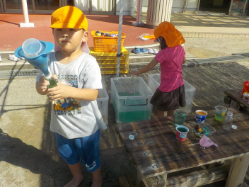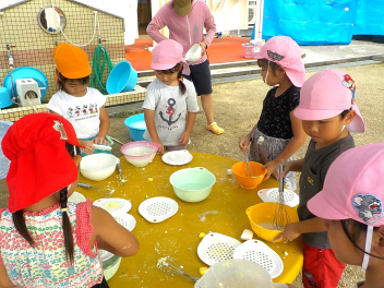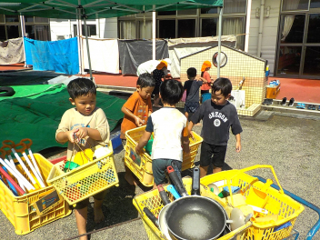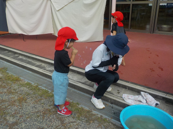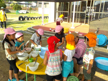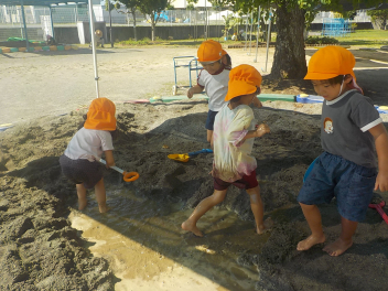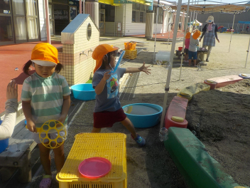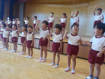 先週の大雨では、ご心配をお掛けしました。預かり保育も早くお迎えに来ていただき、ありがとうございました。9月も2週目になり、空や雲は秋っぽいですが、暑さ指数はまだまだ夏です
