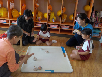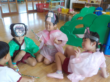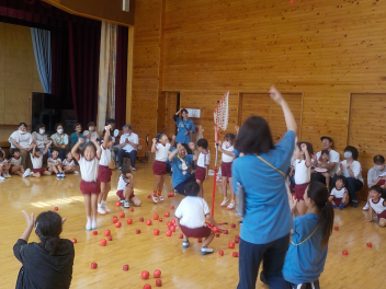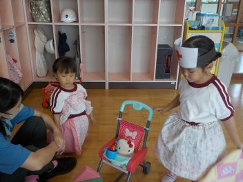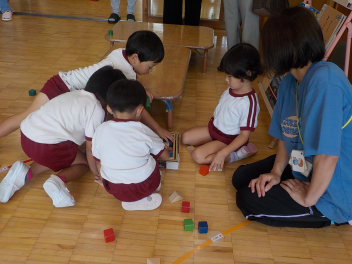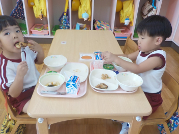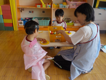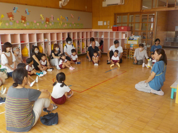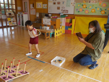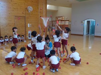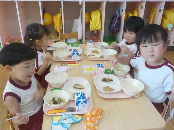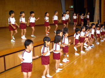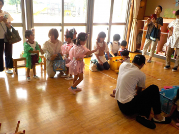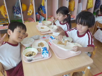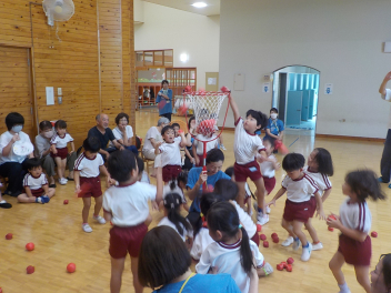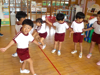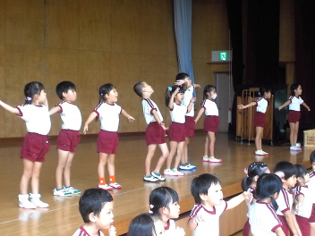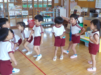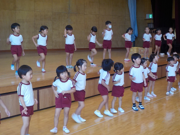 年少組さんは、すっかり幼稚園生活を思い出し、ニコニコ顔がいっぱいになっています