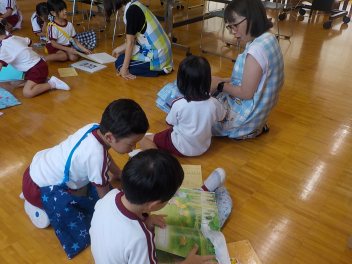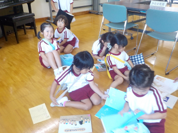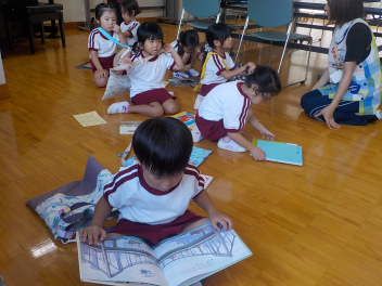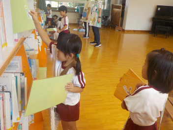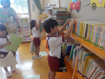 年中組さんは、絵本を借りました。本を探す姿が、お兄さん・お姉さんだなあ