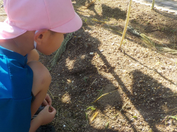日かげの中で遊ぶのが、気持ちいです。今週も元気よく遊びましょうね