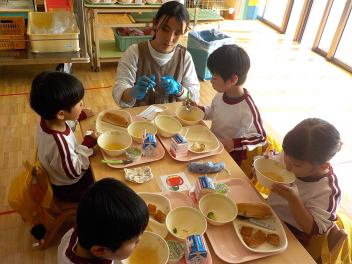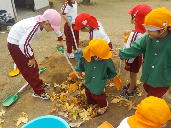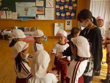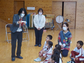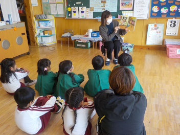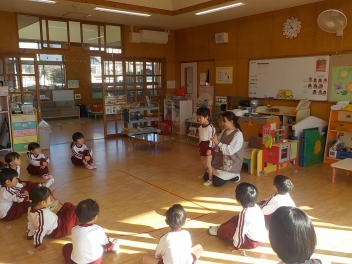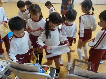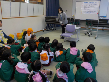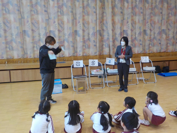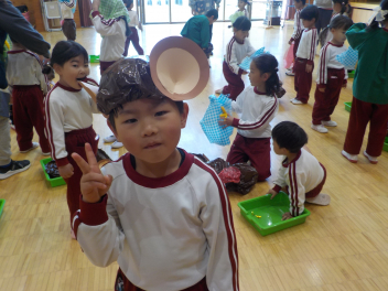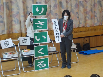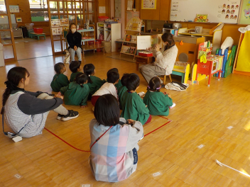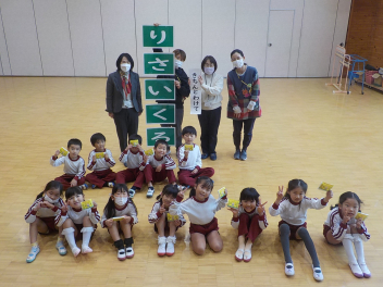 今日は浜松市くらしのセンターから山田さん・川上さんをお招きして、年長児対象出前講座「きちんとわけて リサイクル」の授業(!)をしていただきました。今回で3年目となりますが、年々バージョンアップしていて、とても楽しく学ぶことができました。「遊び」を通して身に付いた学びが、小学校の学びにつながることを、改めて実感しました。いつでも小学校に行けます