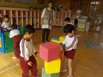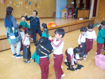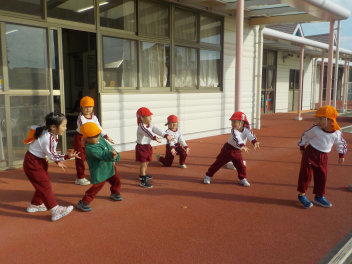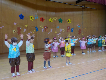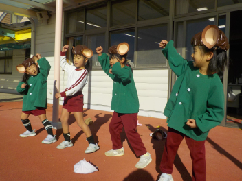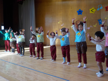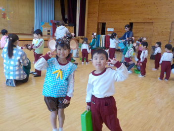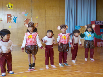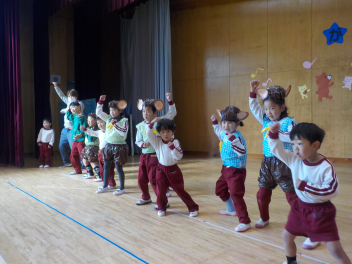 今日は年少組さんが中心となって、「学芸会あそび」をしていました。立派に成長している年少組さんです
