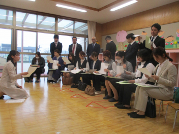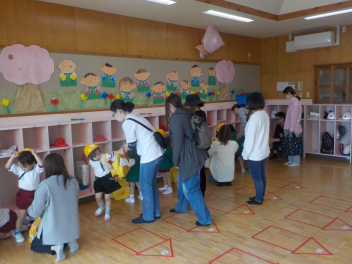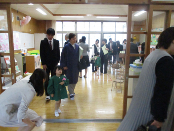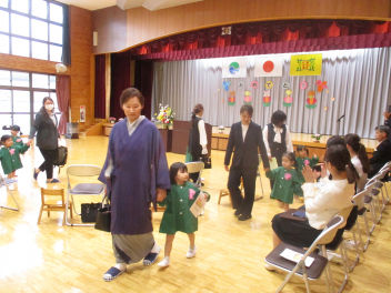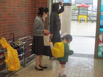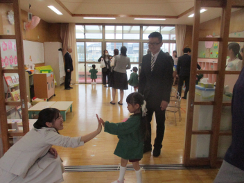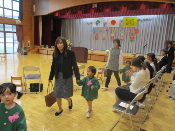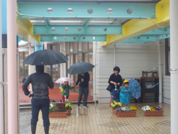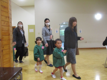 雨脚がどんどん強くなってきましたが、保護者の皆さんが時間通りに集まっていただき、無事に入園式を行うことができました。ありがとうございました。式では、新入園児の皆さんが落ち着いてお家の方と一緒に入場し、椅子に座って先生の話をしっかりと聞くことができていて、素晴らしかったですsadさら、お返事もできたし、記念撮影もあっという間に終わりることができました。短い時間の入園式だったけど、みんな本当によくがんばりました。明日・明後日とゆっくり休んで、月曜日に会おうね。待ってまーす改めまして、ご入園、おめでとうございます。一年間、よろしくお願いします。