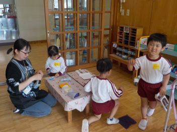 今日は、4月生まれのお友だちの誕生会をしました。司会の年長組さんからインタビューを受けたり、先生からは誕生日カード、みんなからは歌のプレゼントをいただきました。「ありがとう」もしっかりと言えて、とても立派でした最後には、先生からのお楽しみプレゼントもあり、みんなで楽しい時間を過ごしましたお誕生日、おめでとうございます
