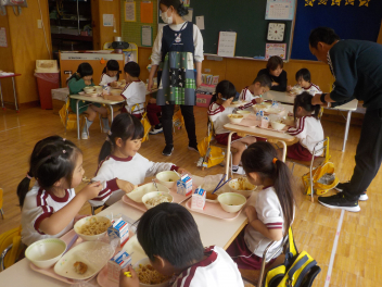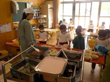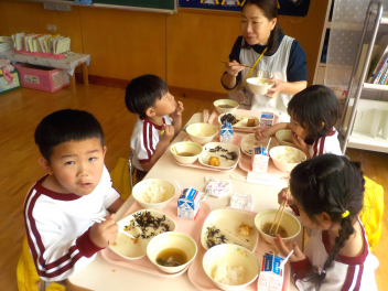 今日の献立は「せきはん・ごましお・ぎゅうにゅう・いわしのうめに・はるキャベツのあかしそあえ・わかたけじる・おいわいゼリー」でした。具合が悪くて職員室のベットで寝ていた子も、完食していました「おいしかったのはなに?」と聞くと、「おいわいゼリー」と即答でした。引佐学校給食センターさん、今日もおいしい給食をありがとうございました