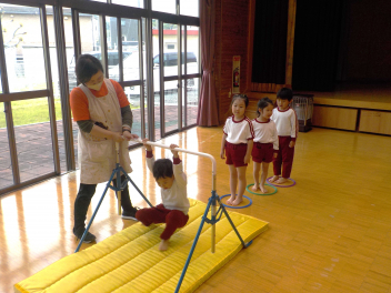 花壇のチュウリップもジャガイモも、スクスク育っています年少組さんは、今日も元気よく登園できました。頑張ってます年中組さん・年長組さんは、一緒にサーキット遊びをしたり、リトミックをしたりしました。仲良く遊んでいます今日の給食はポークカレーだったせいか、お替りを行列ができていました。子どもたちもすくすく育っていますcheeky