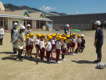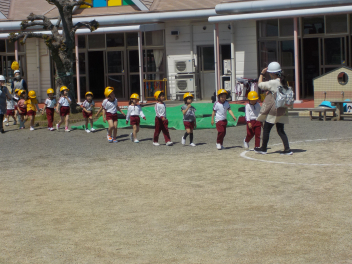 10年前の今日は、熊本地震の本震(震度7)が発生しました。28時間前にも震度7の前震が発生し、熊本城が崩れる映像は衝撃的でした。今日は、地震を想定した避難訓練をしました。本年度最初の訓練なので、お兄さん・お姉さんの訓練の様子を、年少組さんに見てもらいました。「自分の自分で守る」力を身に着けるためには、幼児期からの繰り返しが重要です。本年度も、毎月一回の訓練を重ねていきます。
