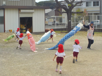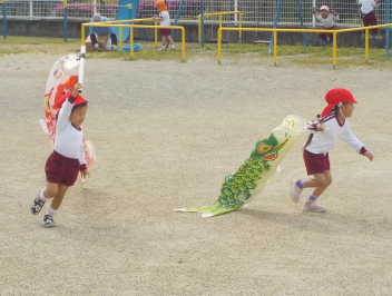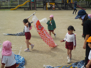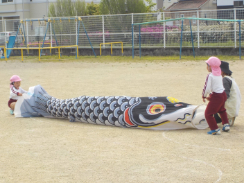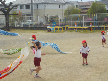 • 朝預かり保育の時でした。「えんちょうせんせいは こいのぼりの くちに はいったことある?めちゃくちゃ たのしいんだよ!」と息せき切って話しかける子ども。今日は園内のいたるところで、こいのぼりが登場して、口から入ったり、持って走ったりと、子どもたちは大はしゃぎでしたcheeky明日もいっぱい遊んでね気温の変化が激しいせいか、風邪ひきさんが増えています。お気をつけください。