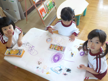 今日は36人全員が登園しました。みんな張り切っています大人も頑張り過ぎると、どっと疲れが出ます。子どもも同じです。家では、ゆっくり過ごさせてください。今日は、とても暑くなりました。園では、水分補給をこまめにしています。明日も待ってます
