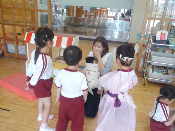 育児休業中の先生が、年中組さんにサプライズ登場昨年度に担任をしていただいた先生に久しぶりに会えて、子どもたちは大喜びでしたありがとうございました