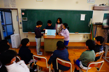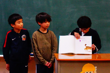 初等部は3年生が、国語の授業を生かしての絵本の読み聞かせをしました。