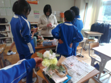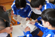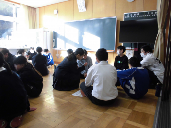 中等部は、グループに分かれてテーマに沿って順に発言します。