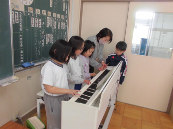 電子オルガンを囲んで、即興の合奏をしました。