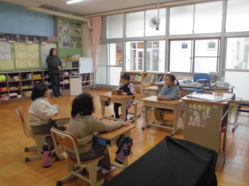 1年生は、「4年生ありがとう集会」のための話し合いをしました。