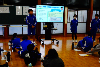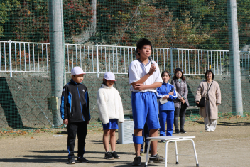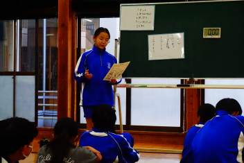 完走大会や研修旅行などの行事や日々の生活の中からみんなに伝えたいことなど、それぞれの代表児童生徒が発表します。