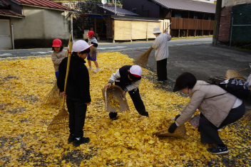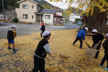 • 12月1日、1,2年生が渋川の大イチョウ清掃に行ってきました。