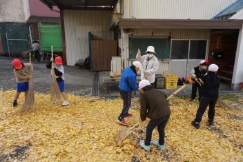 力をあわせて、落ち葉の清掃に汗を流しました。