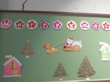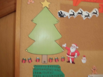 12月に入ったということで、校内の掲示にクリスマス色が現れてきました。