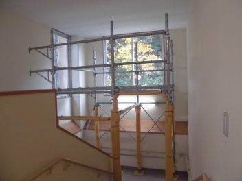 特別教室にエアコンが設置されるということで、足場が組まれています。