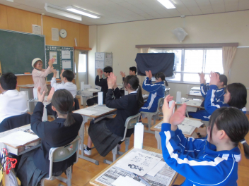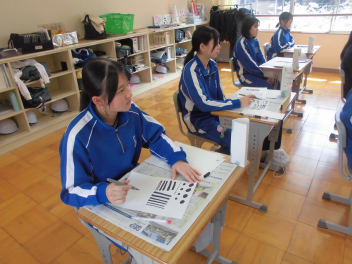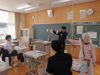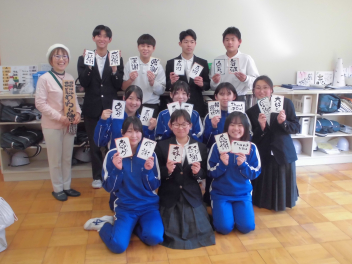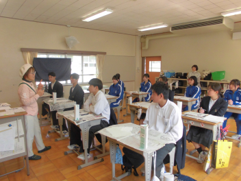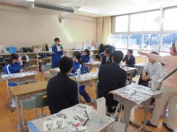 11日、9年生が己書に挑戦しました。