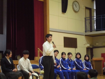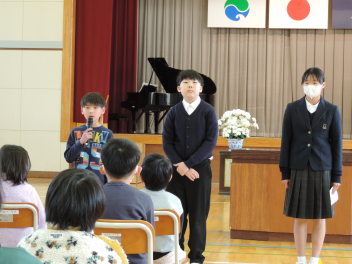 3人の児童生徒が、1年を振り返ってスピーチをしました。