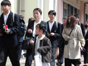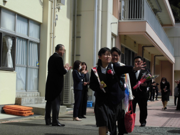 在校生の拍手に送られて。