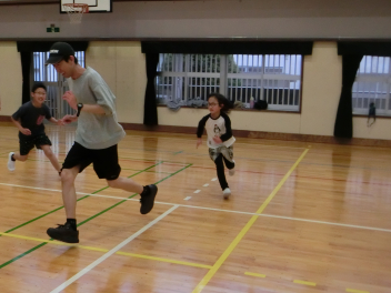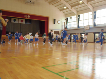 昼休みは、体育館でバスケットボールや鬼ごっこを楽しみました