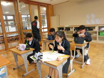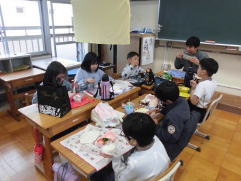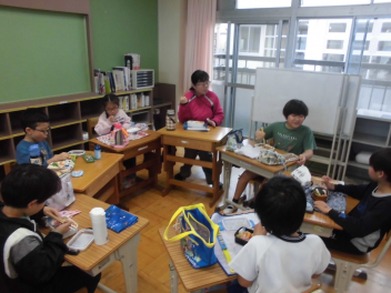 入学したばかりの1年生を囲んで、みんな楽しそうに食べていました。
