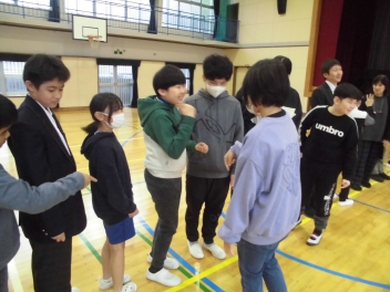 • 13日、2年生と5,6年生が、人間関係つくりプログラムの授業をしました。