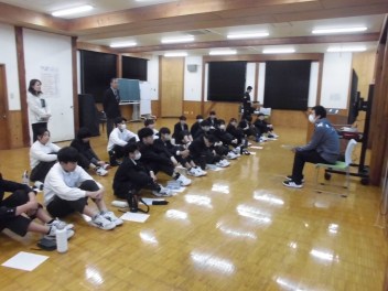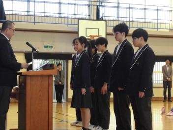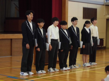高等部は、先生の話を聞いて、高等部として自分が頑張ろうと思うことを考えました。学校のリーダーとして、一年間お願いします