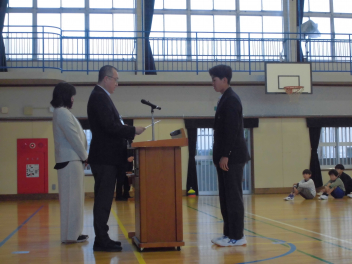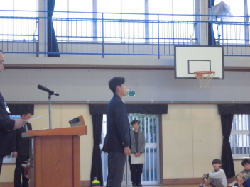 高等部の生徒は、いなほくの三つのほこりについて、紹介しました。