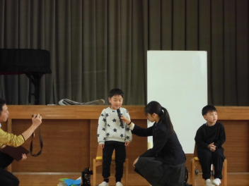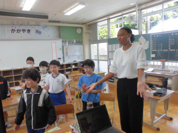 テレビの映像と一緒に英語の歌を歌いながら、体を動かしました。