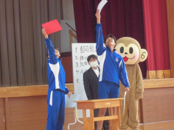全校を二つのチームに分けて、接戦が繰り広げられることになっています。