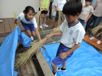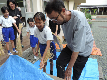 • 18日6時間目に、3,4年生が脱穀体験をしました。
