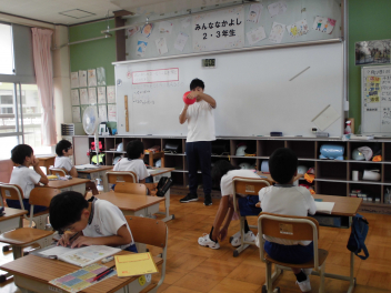 1、2、3年生が聞きやすいようにゆっくりと丁寧に読んでくれました