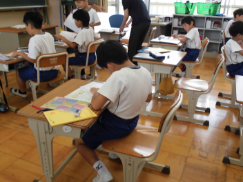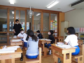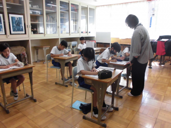 2年生は、先生に手助けをいただきながら、自分で問題を解き進めます。