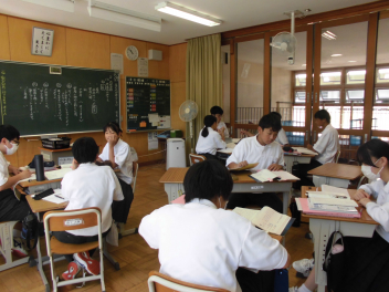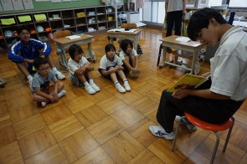 •  朝活動の時間、8年生が1、2、3年生に絵本の読み聞かせをしてくれました