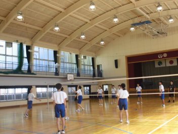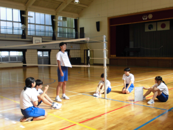 8年生は体育です。2班に分かれて練習の計画を立てます。