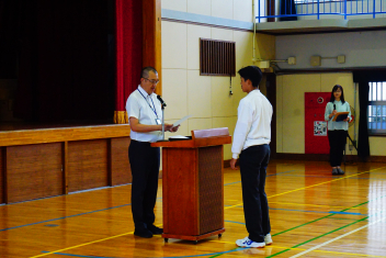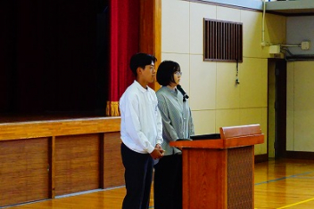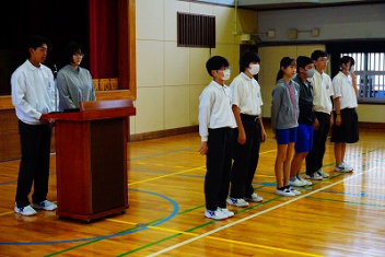 みんな全校児童生徒の前で自分の抱負を発表しました。