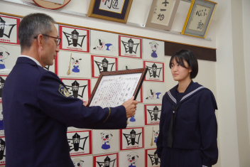 細江警察署から感謝状が贈られました