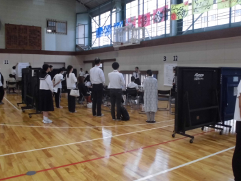 17日午前に体育館で