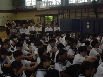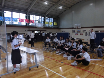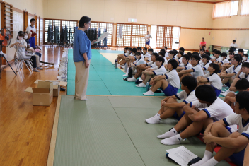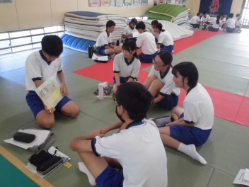 2時間目には、事前学習として武道場で