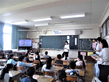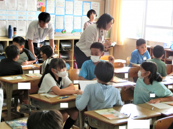 各クラス10分程度の授業を指導主事の先生に見ていただきました。