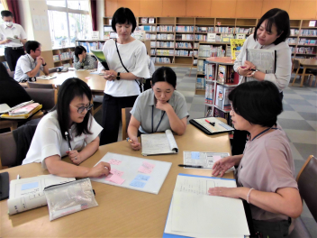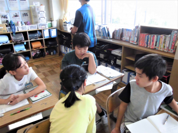 隣同士から始め、徐々に人数を増やして考えを伝え合います。