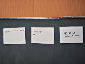 友達の書いた式から、その考え方を推測し、自分の言葉で表現します。