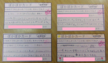 このぽかぽかカードは、お昼の放送で保健委員会が紹介しました