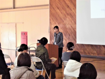 1年生の一日の様子の紹介や入学前準備についての話がありました。