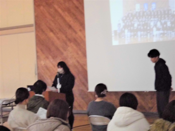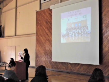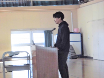 プレゼンテーション資料を基に、残り少ない今年度の学校生活に込めたメッセージを伝えます。