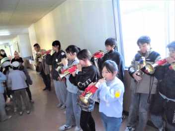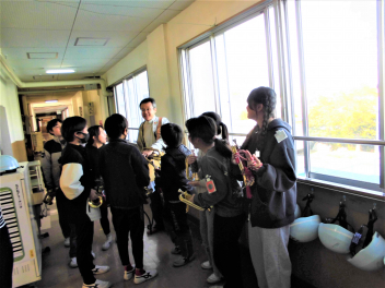 ラッパの音色に魅せられて、そのまま下校する1年生